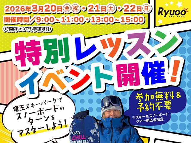 ☆スノボデビュー日本一宣言!期間中デビューレッスン無料。世界最大級ロープウェイで山頂部へ、SORA terrace cafeでランチに雲海も?