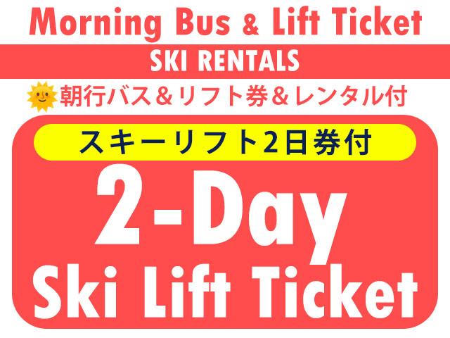往復バス&リフト2日券&レンタル3日付(0泊3日間)リフト券付直通バスプラン