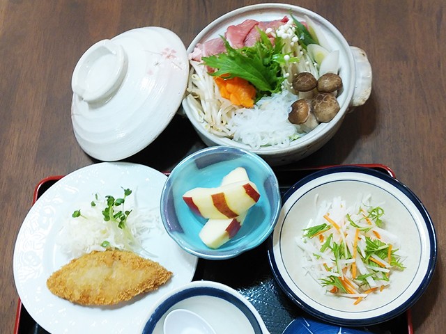 「戸狩鍋」+「和洋セットメニュー」※自家製の野菜を使った手作り料理